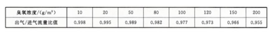 不同臭氧濃度時(shí)出氣/ 進(jìn)氣體積流量比值見表C.7。