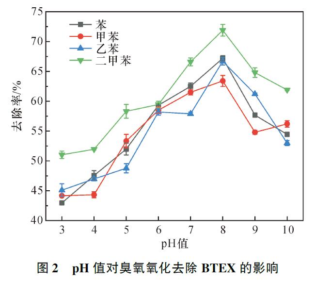2.1pH值對(duì)臭氧氧化降解BTEX的影響