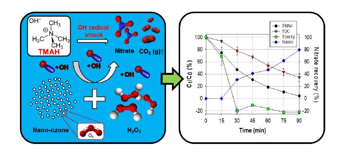 納米臭氧/ H2O2工藝在pH 10和25°C下對(duì)TMAH的去除效果好。