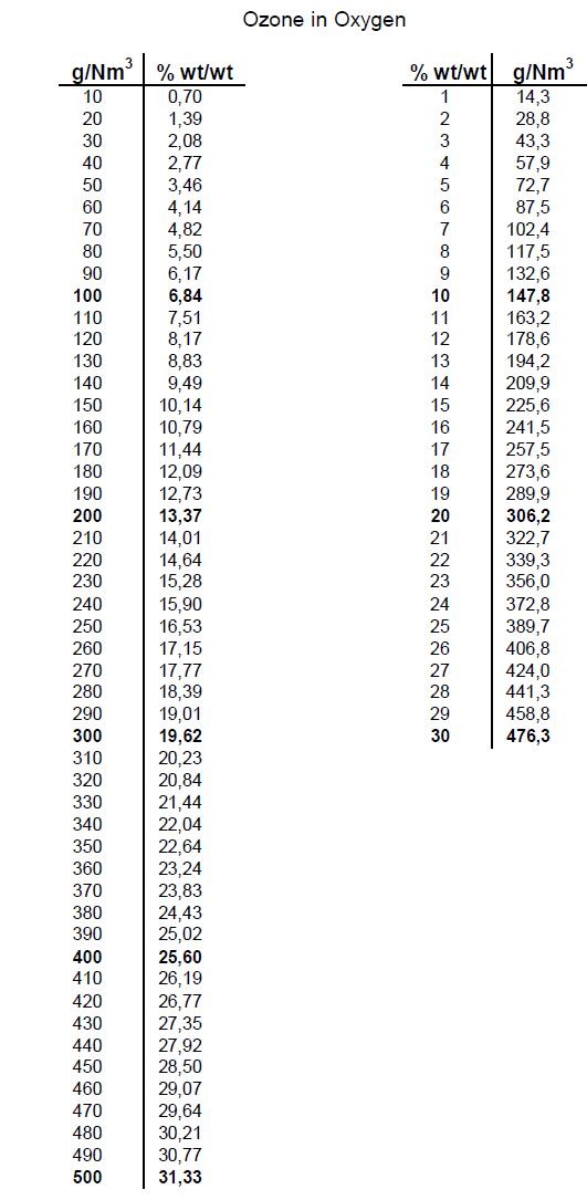 下面是臭氧重量和臭氧濃度比例參考圖