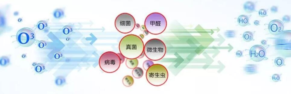 臭氧(O3)的消毒原理是:臭氧在常溫、常壓下分子結(jié)構(gòu)不穩(wěn)定,很快自行分解成氧氣(O2)和單個氧原子(O)。后者具有很強的活性,對細(xì)菌有極強的氧化作用,將其殺死,多余的氧原子則會自行重新結(jié)合成為普通氧原子(O2),不存在任何有毒殘留物,故稱“綠色”消毒劑。它不但對各種細(xì)菌(包括肝炎病毒,大腸桿菌,綠濃桿菌及雜菌等)有極強的殺滅能力,而且對殺滅霉菌也很有效。