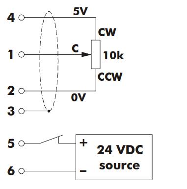 可選的儀器可以訂購6針遙控連接器(綠色),而不是電位器。